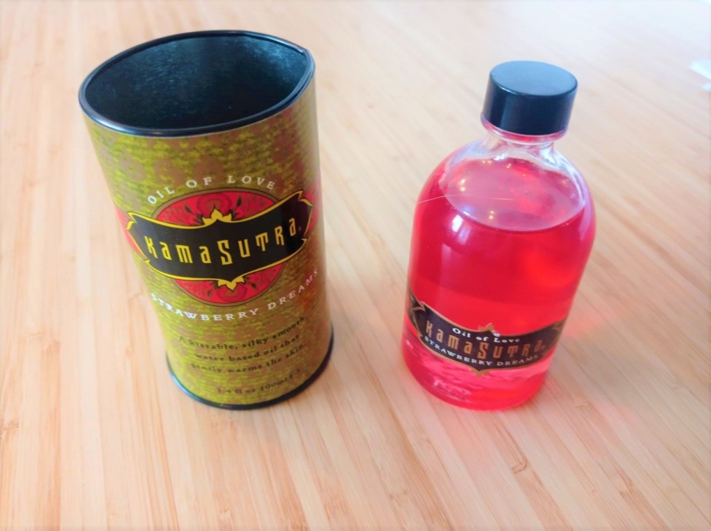 Kamasutra Strawberry Dreams on lämmittävä hierontaöljy, johon rakastuin välittömästi. Tuotteista ehdoton suosikkini. Rakastan kaikkea lämmittävää, sillä lämmmöllä on ollut minuun aina rentouttava ja unettava vaikutus. Tuote levittyy pehmeästi ja helposti iholle. Se hoitaa ihoa ja imeytyy helposti, sotkematta. Kuten nimi sanoo, on tuote lievästi mansikanhajuinen ja -makuinen. Haju on kuitenkin mieto, eikä liian esanssinen. Aluksi tuote tuntuu tavalliselta hierontaöljyltä, Kumppanin puhaltaessa kohtaan, johon öljyä on levitetty, valtaa kehon huumaava lämpö, joka paitsi rentouttaa, myös saa aistit hereille. Huomaathan kuitenkin, että mikäli kehorukka on aivan jumissa, ei lämpö välttämättä tunnu kovin voimakkaasti. Kannattaa siis mahdollisuuksien mukaan hieroa paikkoja kunnolla auki ja viimeistellä homma tällä tuotteella. Kumppani voi suudella kohtia, joihin on levittänyt öljyä ja tämä se vasta hyvällä tavalla julmaa kiusoittelua onkin. Kumppanin huulille jää hento mansikan maku. Koostumukseltaan tuote ei ole ehkä paras mahdollinen jumeja avaavaan hierontaan, mutta sensuelliin leikkiin se on aivan täydellinen. Jos haluat oikeasti hemmotella kumppaniasi, valitse tämä tuote. Pienen kokonsa vuoksi tämä täyden 5/5 arvion saava tuote on helppo ottaa mukaan. 100ml pullo maksaa 21,90e.